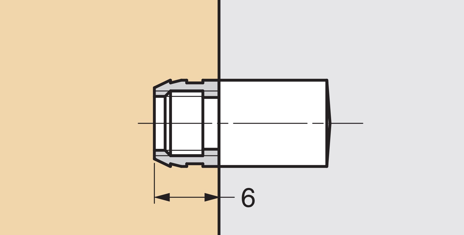 - डॉवेल को Ø8 mm (5/16″) के व्यास वाले छिद्रों में दबाया जाता है